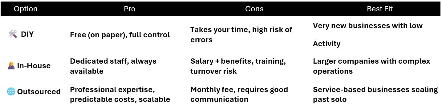 👉 This is why so many local contractors and service providers in Edmonds and Snohomish land on outsourced bookkeeping as the right balance.